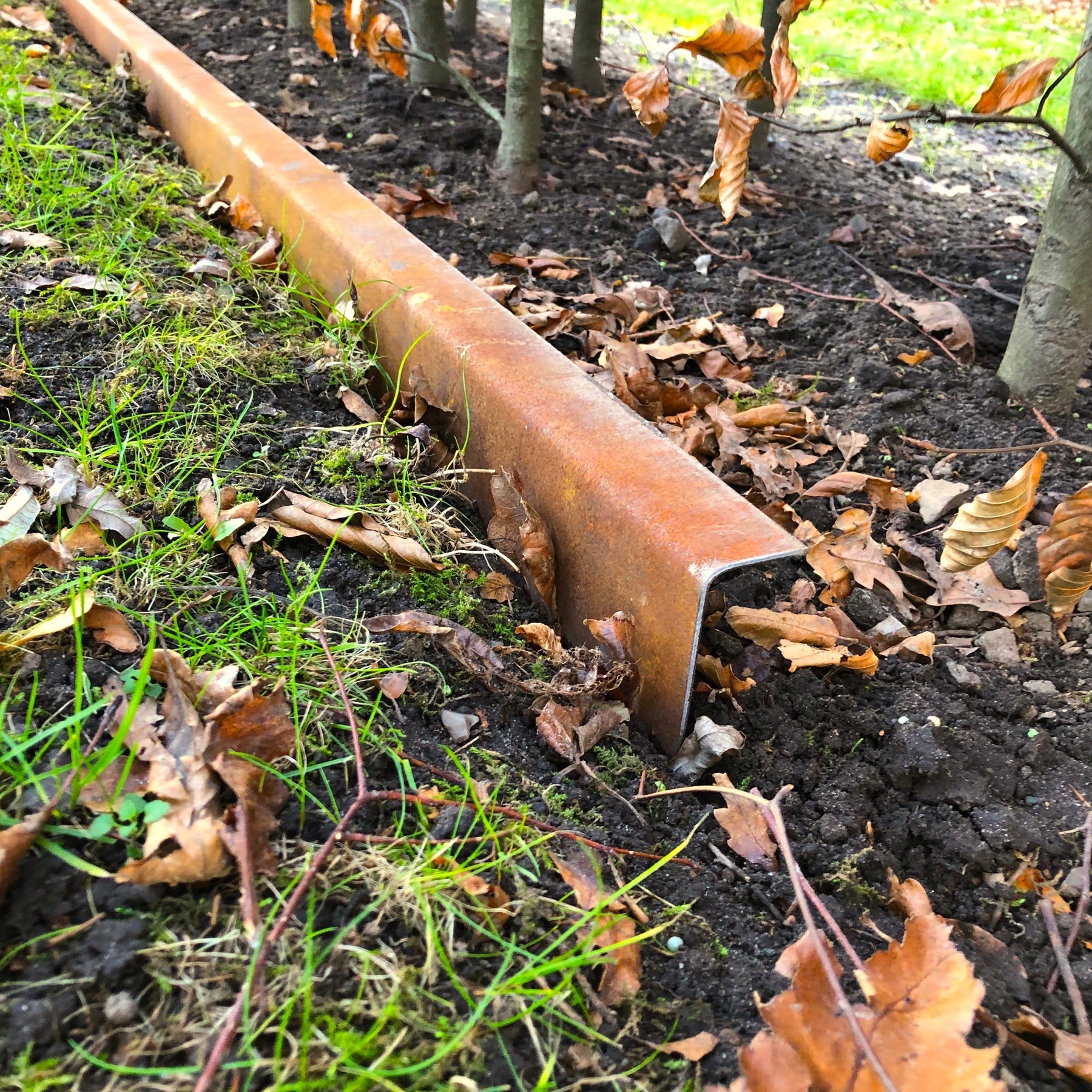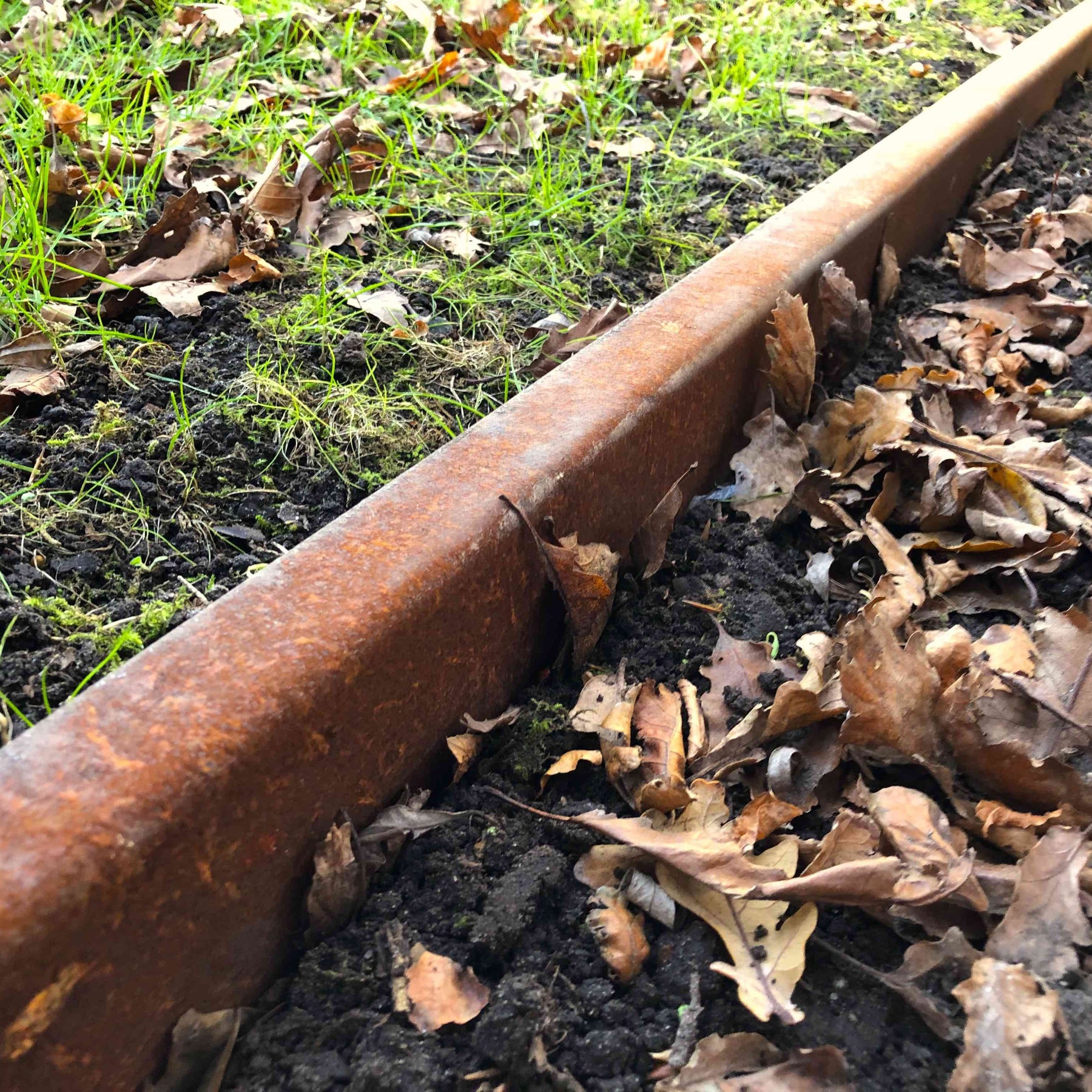 Borderrand met omgezette bovenrand - van 3 mm cortenstaal.