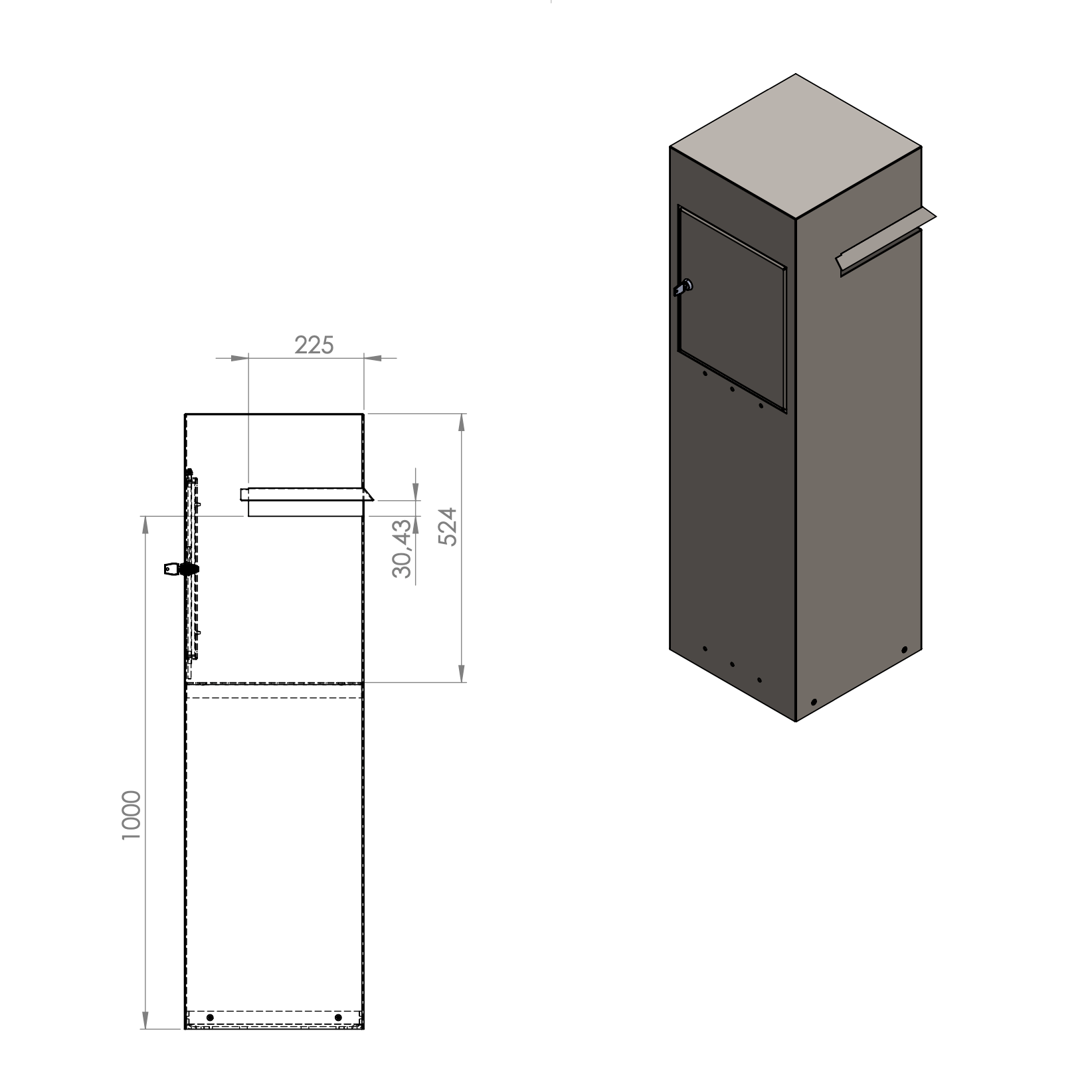 De brievenbus heeft een brievenklep aan de voorkant en een deur met slot aan de achterkant, waar de post wordt verameld. De brievenbus is gemaakt van wit gelakt aluminium (RAL9016, mat). Op verzoek kan het slot worden vergangen door een ander model. De binnenbodem van het verzamelvak is gemaakt van geperforeerd metaal, zodat kranten of brieven nooit in regenwater blijven liggen