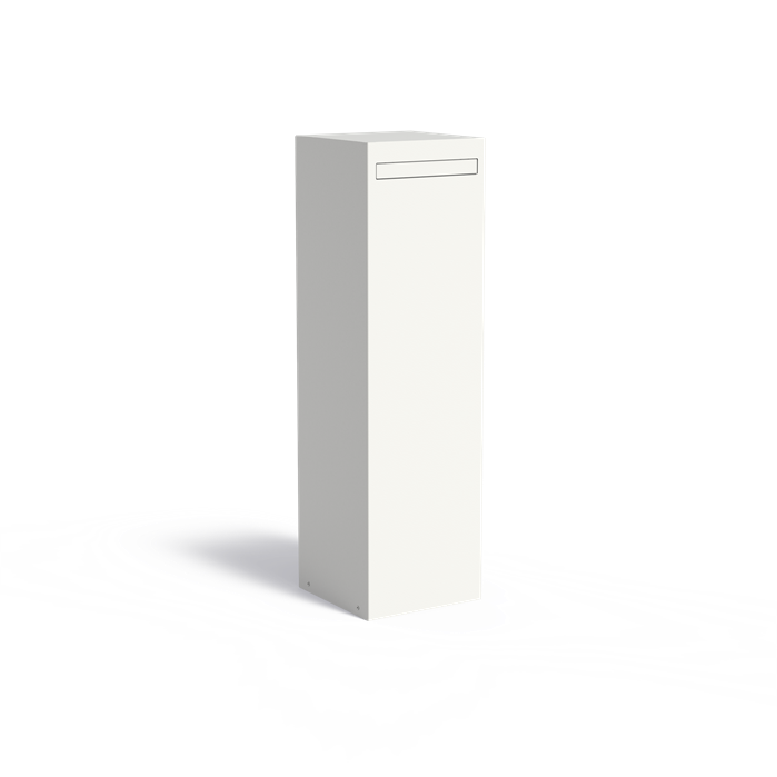 De brievenbus heeft een brievenklep aan de voorkant en een deur met slot aan de achterkant, waar de post wordt verameld. De brievenbus is gemaakt van wit gelakt aluminium (RAL9016, mat). Op verzoek kan het slot worden vergangen door een ander model.