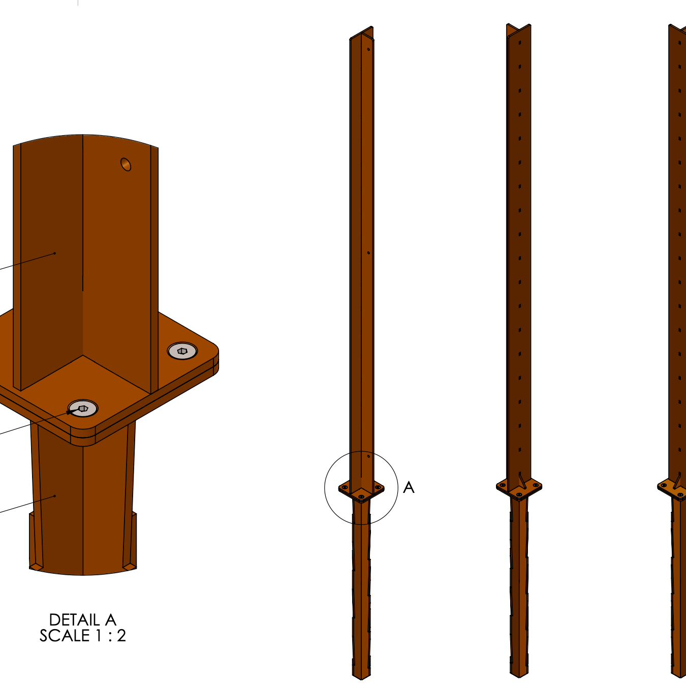 Palen voor je cortenstalen paneel. Geschikt voor de schuttingsystemen van Staaltuin. Gemaakt van 6 mm cortenstaal en voorzien van een grondpin. De palen hebben een totale lengte van 2700 mm, waarvan 1900 mm boven de grond. De palen hebben een breedte van 106 mm.