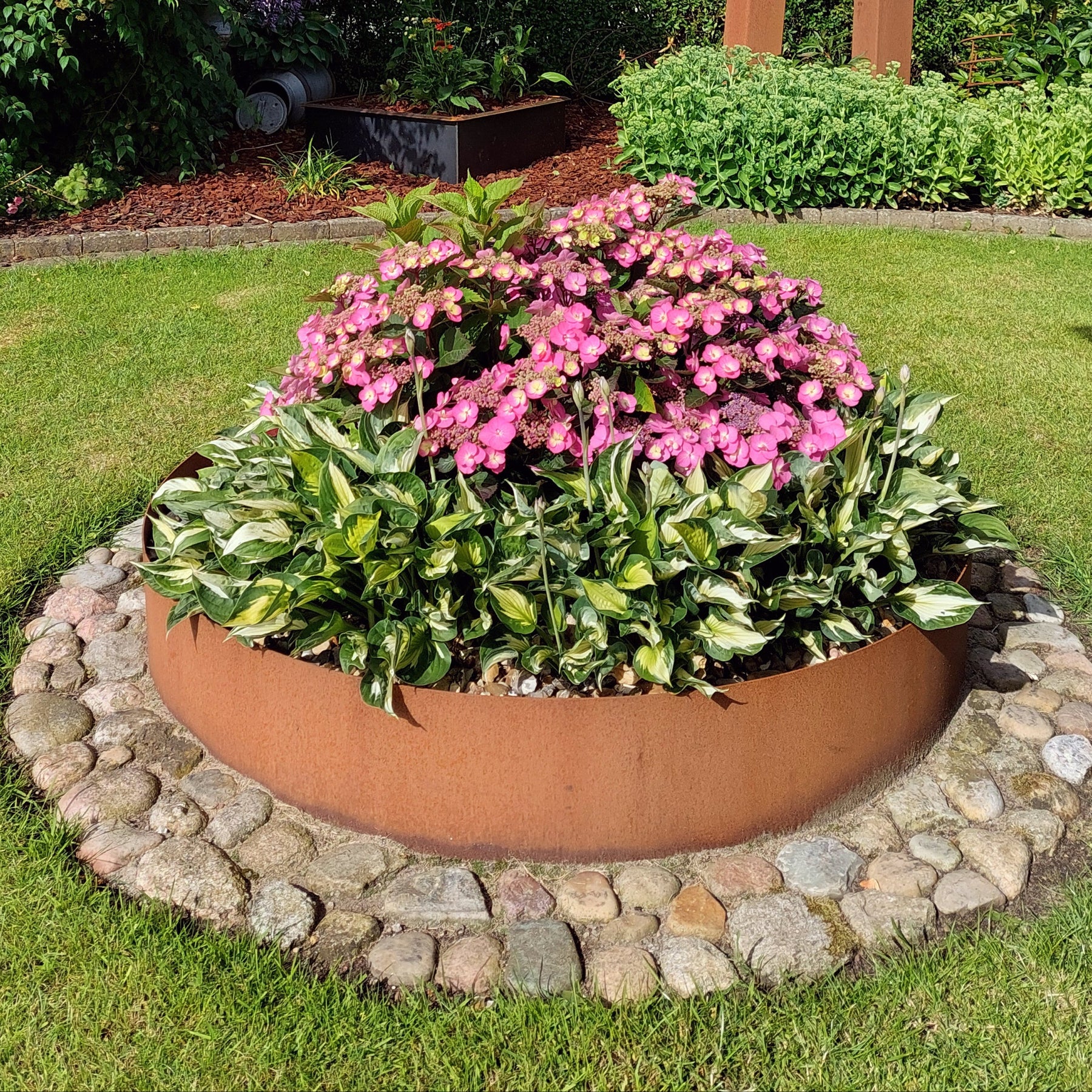 Een ronde borderrand van 3 mm cortenstaal, vervaardigd en gesmeed in Denemarken door Staaltuin. Deze ronde borderrand is perfect voor het afbakenen van een rond bloembed - bijvoorbeeld rondom een vlaggenmast of centraal op de oprit. De mogelijkheden zijn eindeloos.