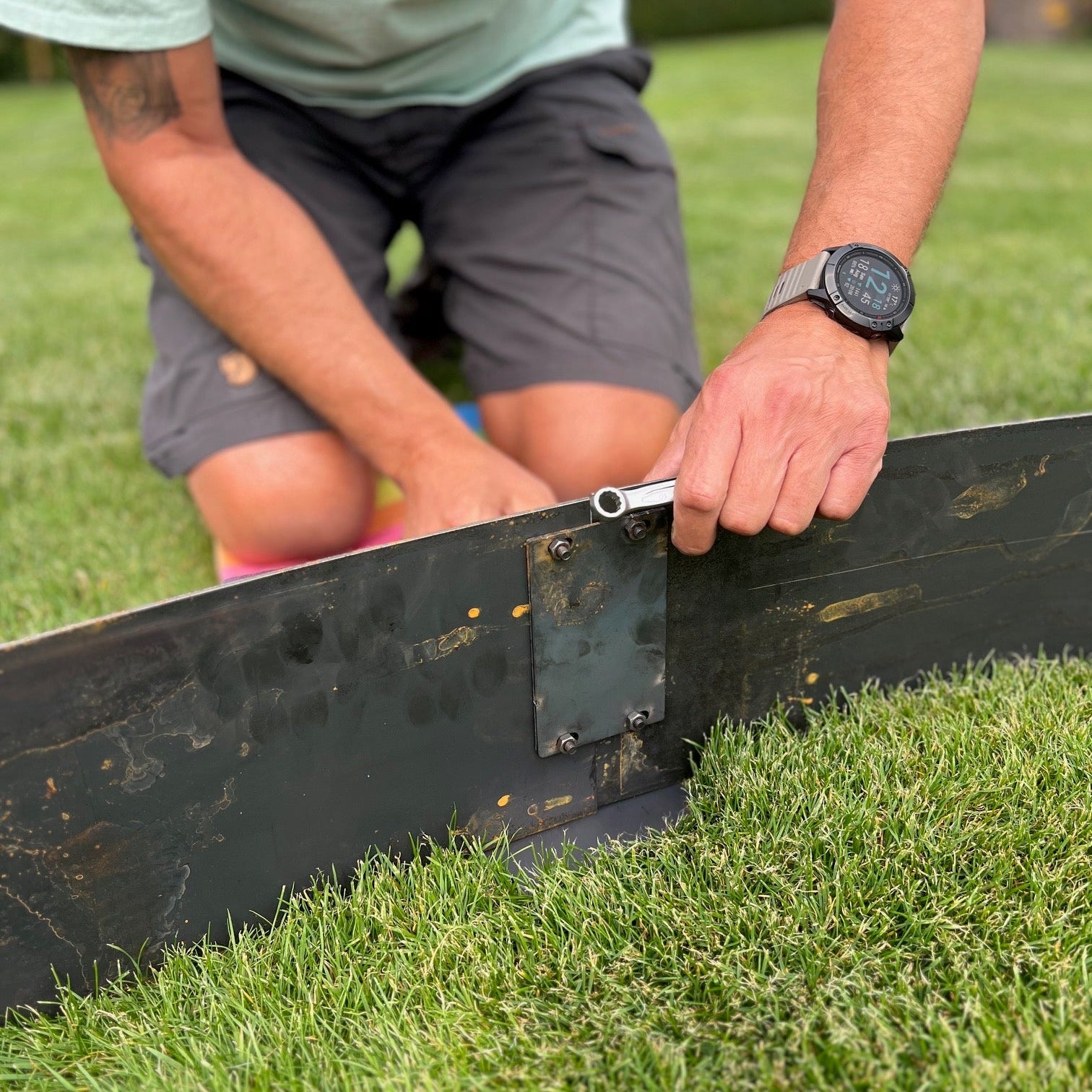 De ronde borderranden worden geleverd met schroefverbindingen, zodat ze ook rond een bestaande boom of plantenbak kunnen worden geplaatst. Ze worden geleverd met stalen bouten en moeren die net als de borderrand gaan roesten, waardoor ze vrijwel onzichtbaar zijn in het geheel.