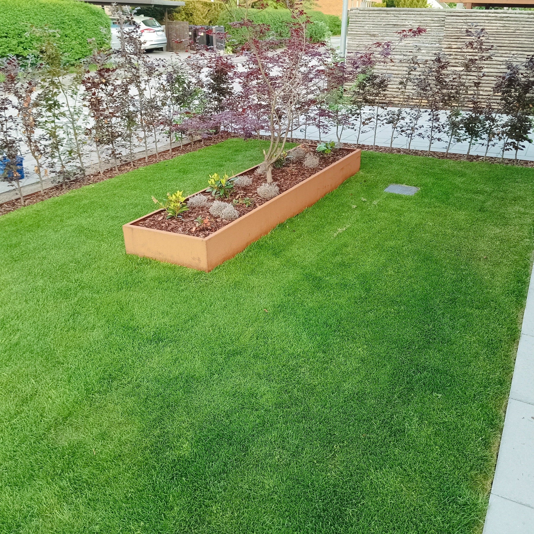 De plantenbak is een ambachtelijk, gesmeed kwaliteitsproduct met volledig gelaste hoeken en interne versteviging. Je hoeft je dus geen zorgen te maken over verbindingen of iets dergelijks – denk alleen nog maar na over wat je erin wilt planten.