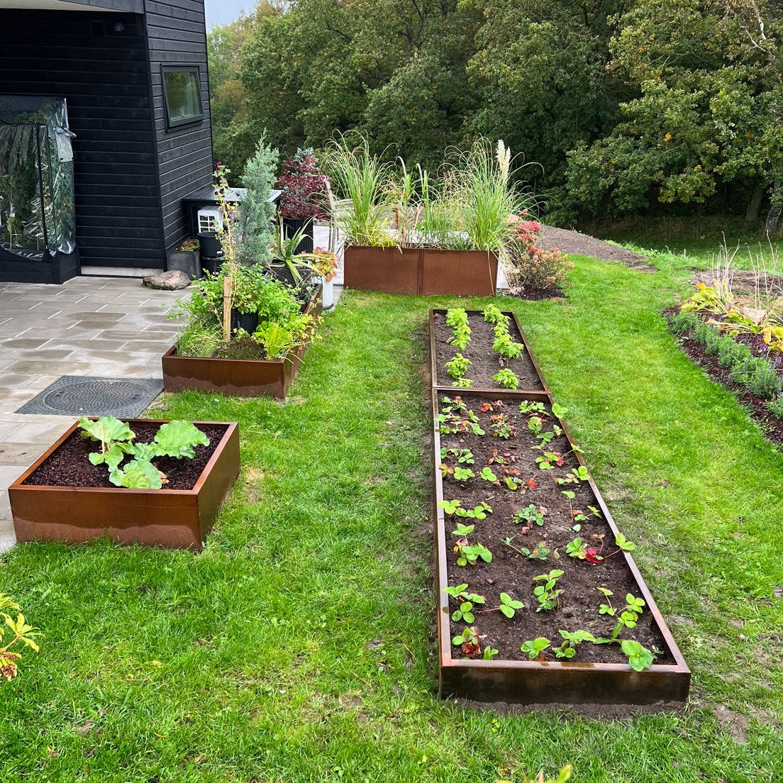 Een plantenbak van cortenstaal in een moestuinuitvoering met een lage hoogte van 30 cm. Verkrijgbaar in verschillende lengtes en breedtes. De standaardbreedte is 50 cm als de bak slechts vanaf één kant toegankelijk hoeft te zijn. Het model van 80 cm breed is een goede keuze als de plantenbak van beide kanten toegankelijk moet zijn.